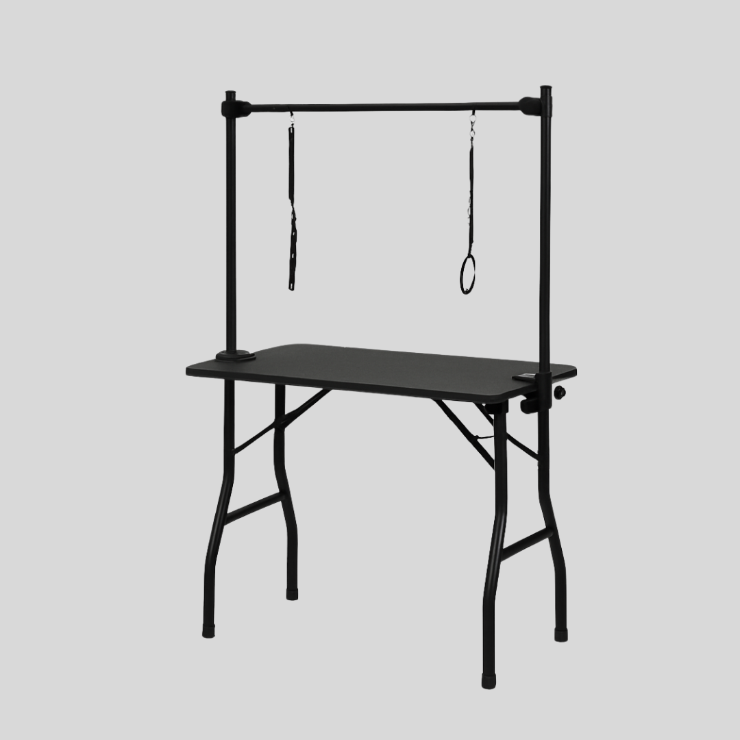 De Groomstyle trimtafel heeft een ruim anti-slip werkblad, dubbele trimarm en stevig inklapbaar design. Ideaal voor veilig en comfortabel trimmen, thuis of in de salon.