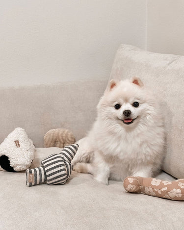 Met zijn neutrale kleur en hoogwaardige afwerking past de PRUFF Knoop Knuffel ook nog eens mooi in elk interieur. Het is meer dan alleen een speeltje: het is een stijlvolle én praktische toevoeging aan het leven van je hond.